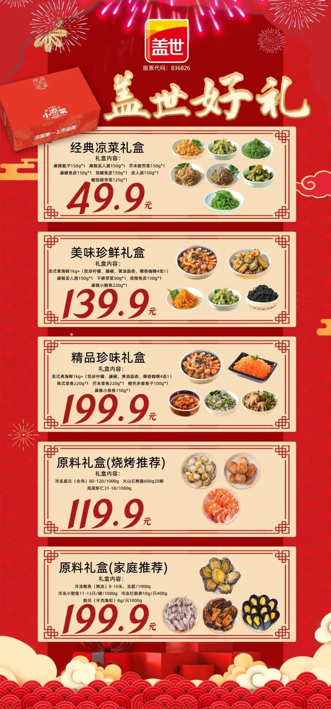 回家?guī)裁??過節(jié)吃什么?今年中秋節(jié),很多人從“老幾樣”中走出來,悄然實(shí)現(xiàn)消費(fèi)升級(jí)。在他們的“采購清單”中,增添了大量具有時(shí)代特色的優(yōu)質(zhì)商品,比如,蓋世經(jīng)典涼菜、蓋世美式煮海鮮、蓋世金湯東北酸菜魚、蓋世繽紛魚子類產(chǎn)品、蓋世撈汁小海鮮等等。有涼有熱,有葷有素,有魚有蝦……一席盛宴,闔家圍坐,歡聲笑語,有滋有味,這正是家的味道,“蓋世”無雙的味道。